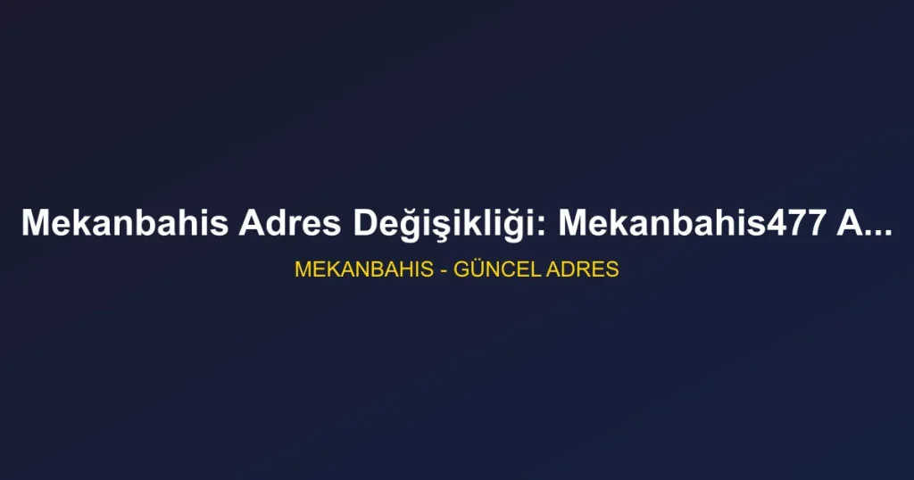 Mekanbahis Adres Değişikliği: Mekanbahis477 Aktif